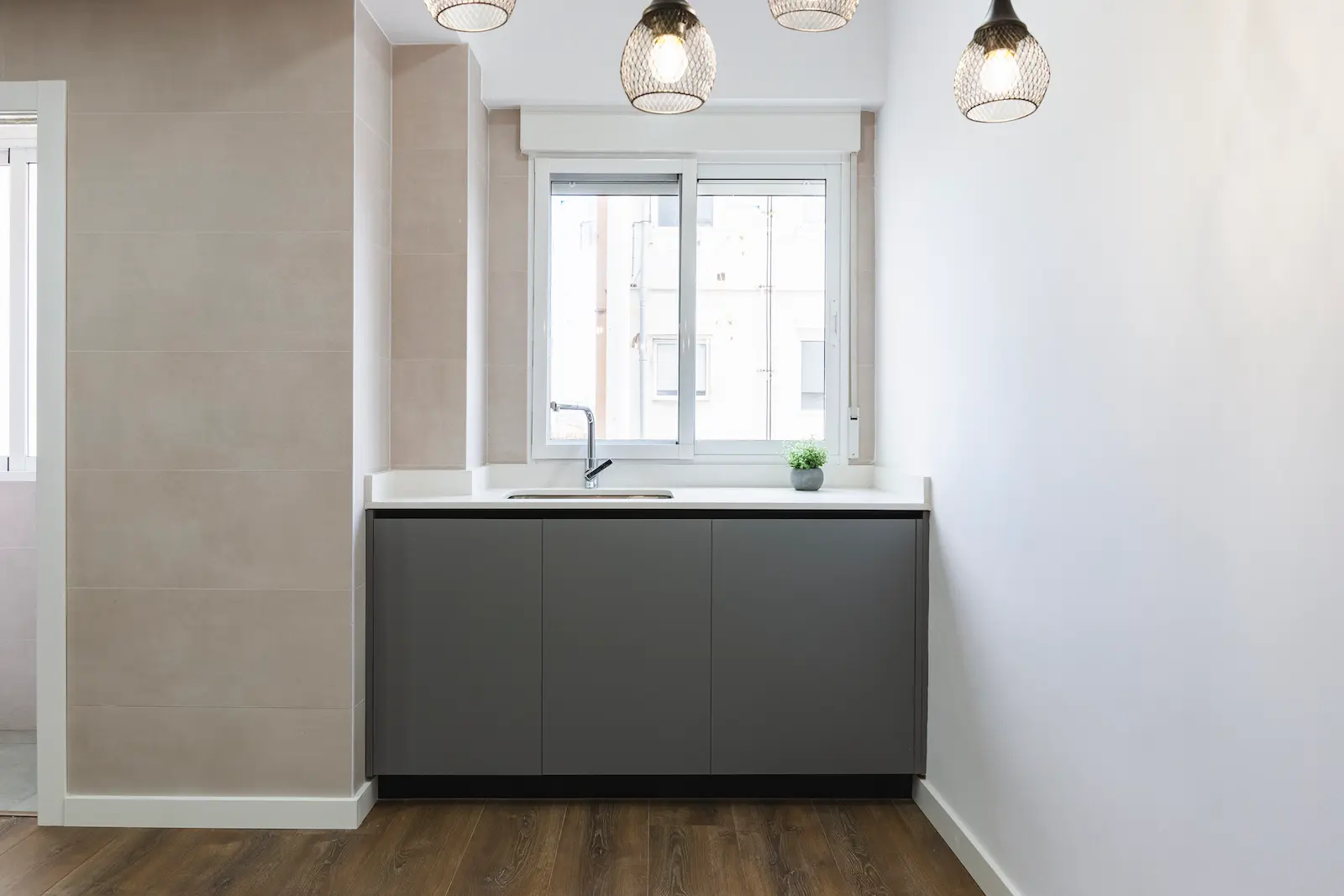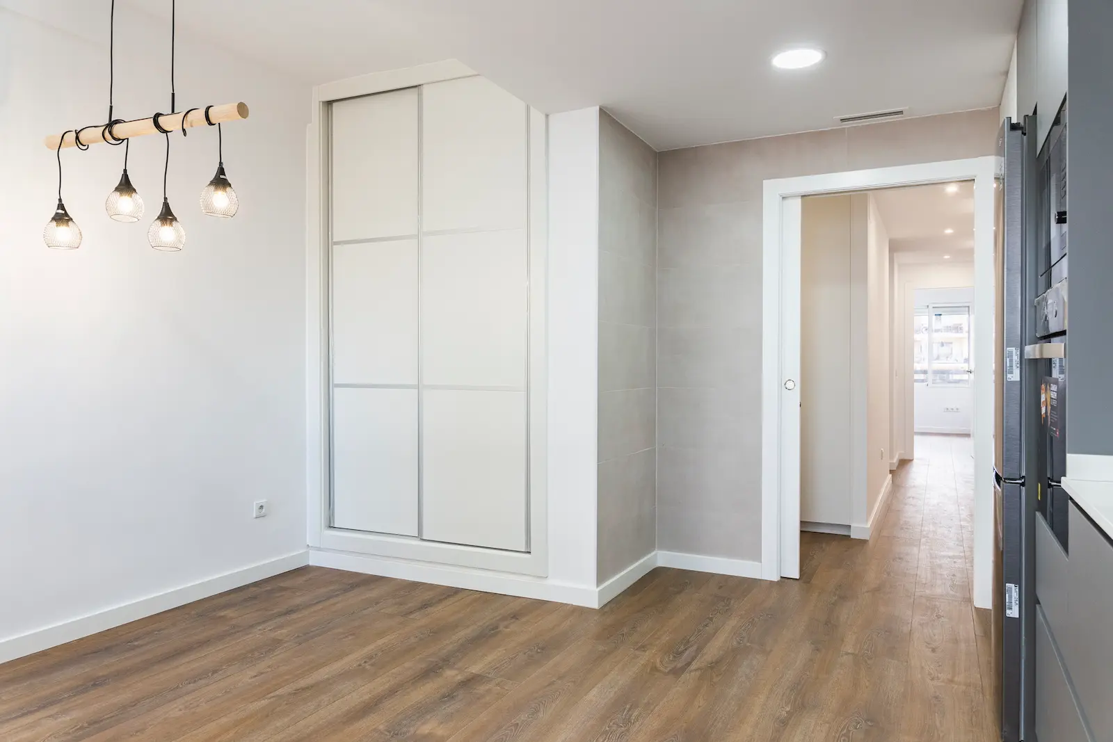 La vivienda consta de tres habitaciones, dos baños, con un salón-comedor y una cocina con lavandería incluida. Se trata de una reforma integral que no habia sido reformada y que necesitaba actualizarse, los trabajos de carpintería en cocina y armarios fueron la mejor solución para brindarle al piso una comodidad y funcionalidad.